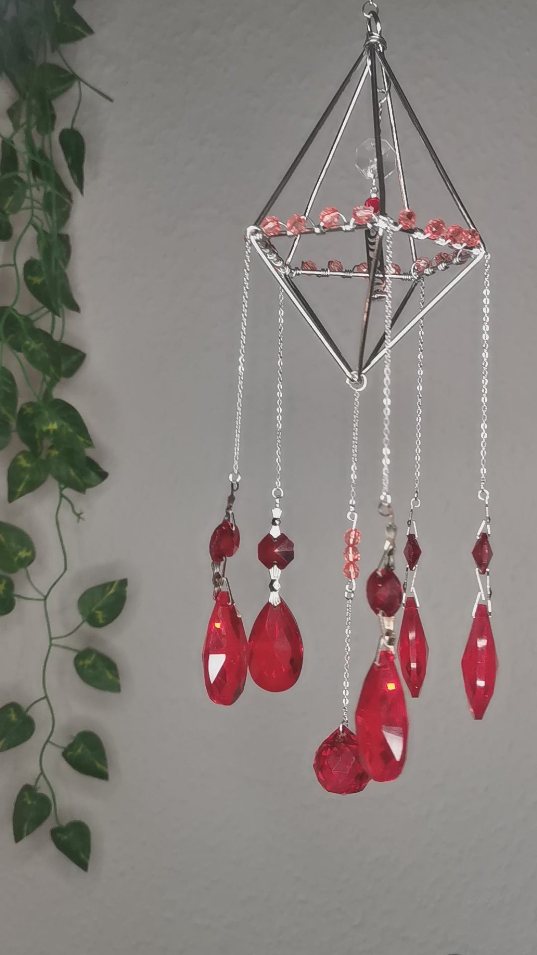 Silberner Sonnenfänger ohne Kristalle, dafür mit hochwertigen Glasperlen. Handgefertigt. Perfekt für dein Fenster, betrachte das Lichtspiel der Sonne.